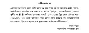‘দুর্গাপূজা, ফাতেহা-ই-দাহম, প্রবারণা পূর্ণিমা ও শ্রী শ্রী লক্ষীপূজা উপলক্ষ্যে ছুটি……