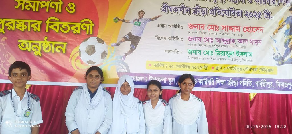 ৫২তম জাতীয় স্কুল, মাদ্রাসা ও কারিগরি শিক্ষা গ্রীষ্মকালীন ক্রীড়া প্রতিযোগিতা-২০২৫ । উপজেলা পর্যায় সাঁতার ও দাবা প্রতিযোগিতায় বিজয়ীদের পুরস্কার গ্রহণ। আলহামদুলিল্লাহ। এখন জেলা পর্যায় অংশগ্রহণ করবে (শুধু চ্যাম্পিয়ন)।